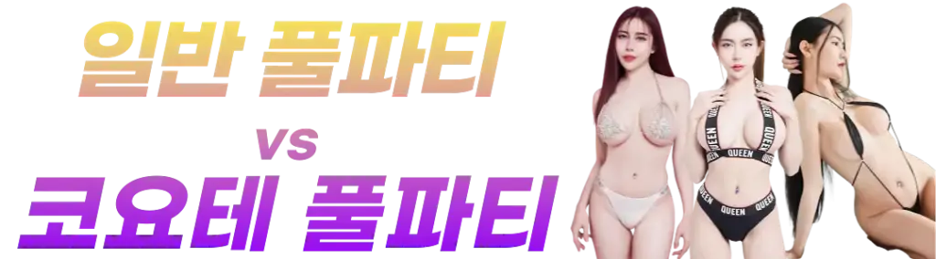 일반 풀파티는 가장 가성비로 코요테 풀파티만큼 시작부터 벗지는 않지만, 또 벗겨먹는 맛이 있습니다. 아가씨들도 가라오케에서 픽업해서 노는거라 당연히 하이텐션이고, 잘 놀기로 유명합니다. 일반 풀파티는 정해진 아가씨와 프라이빗하게 즐기실 수 있는 베이직 코스입니다.